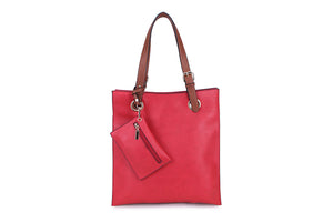 8805- Brown Strap Tote Bag - Red