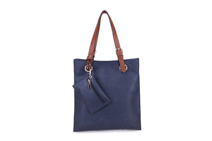 8805- Brown Strap Tote Bag - Navy