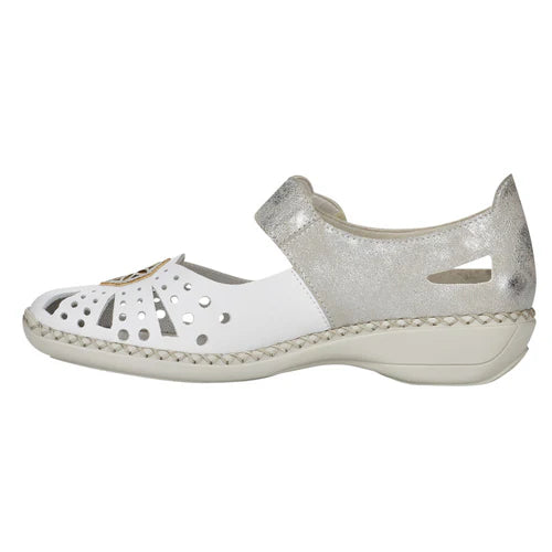 These low-wedge shoes from Rieker are the perfect everyday shoes. Their low height makes them perfect for everyday wear, while the laser-cut pattern and scalloped edges make them easy to dress up. They are shoes perfect for any occasion.