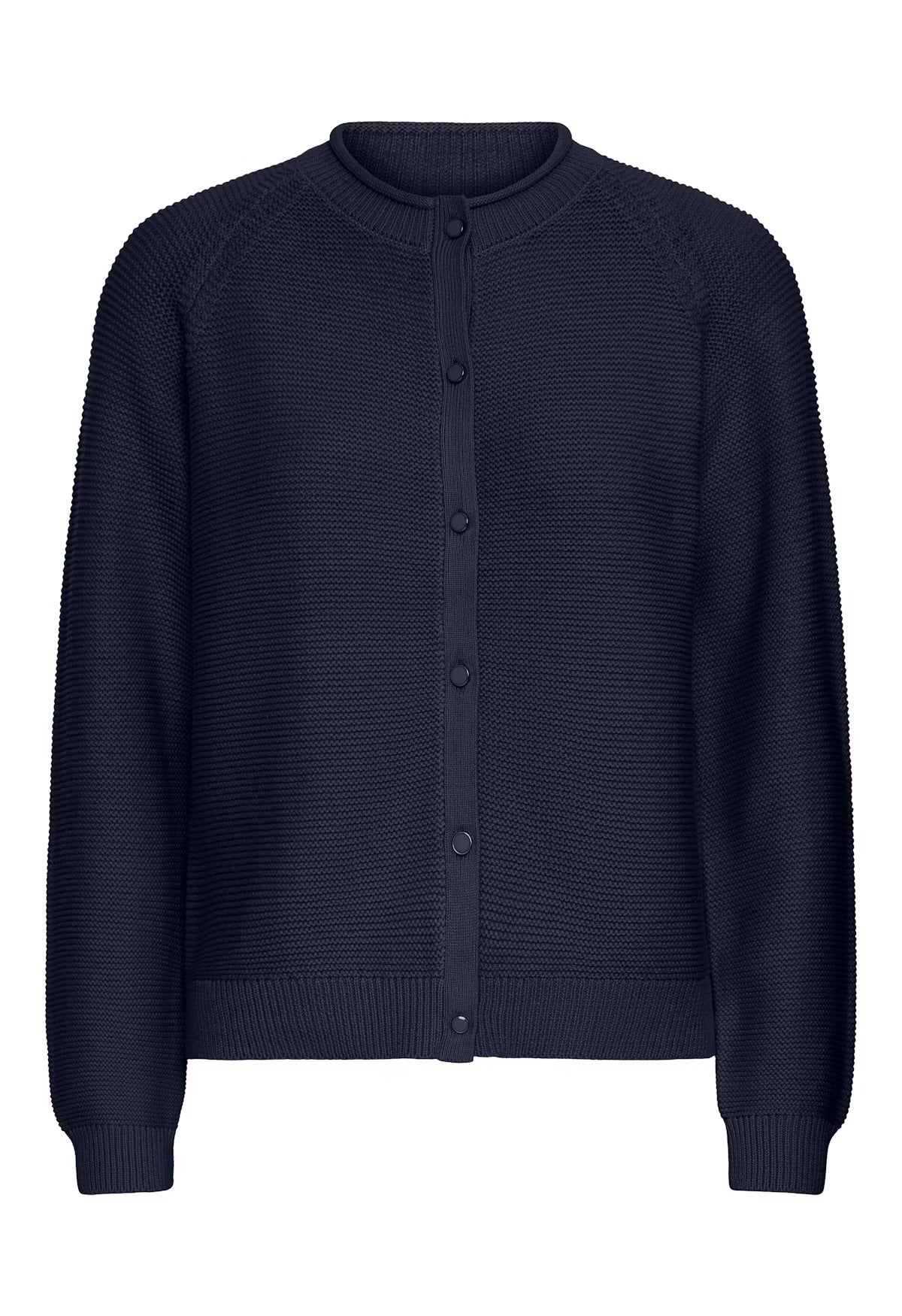 5554- Cotton Knitted Button Up Cardigan- Navy- Fransa