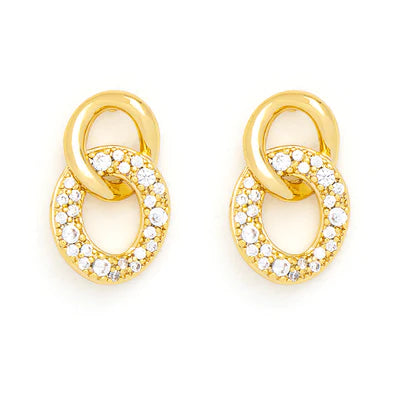 Miniature interlinking drops with CZ sparkle and 18K gold plating.  Post fastening.