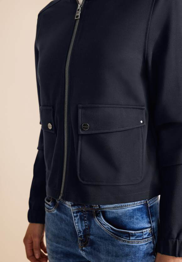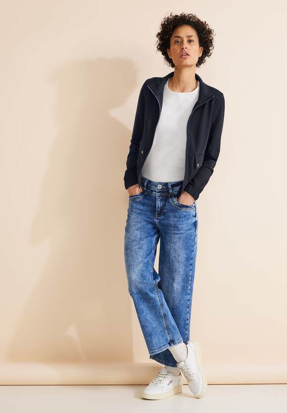 The transitional jacket from Street One is a loose women's jacket with a stand-up collar, zipper and pockets that close with press studs. Made from durable Punto the Roma quality, this jacket will accompany you comfortably through many seasons. With its timeless design and high-quality workmanship, it is a reliable companion for the transition.