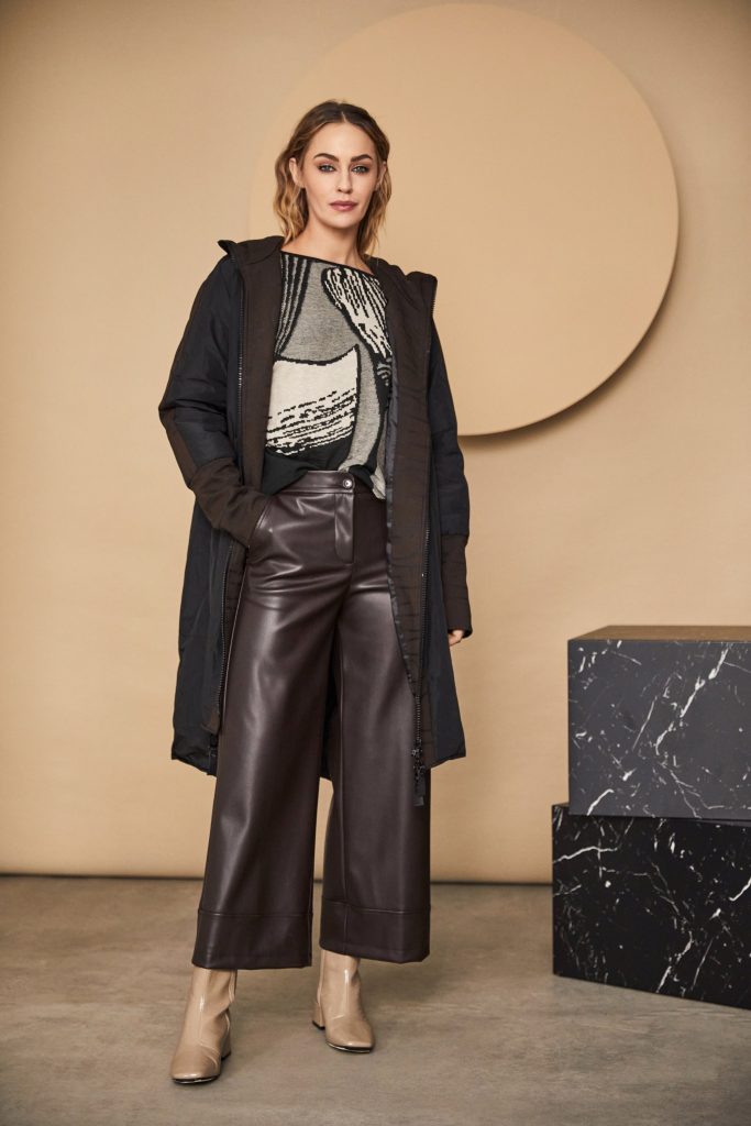 RICH COAT ; NAYA renowned for their coat offering have introduced a beautiful mid length coat that is considerately layered with a lavish print trim. It also feature a soft hood, chunky zip closure, and side pockets. #NAYA #NAYASTOCKIST #NAYAIRELAND #NAYAUK #IRISHDESIGN