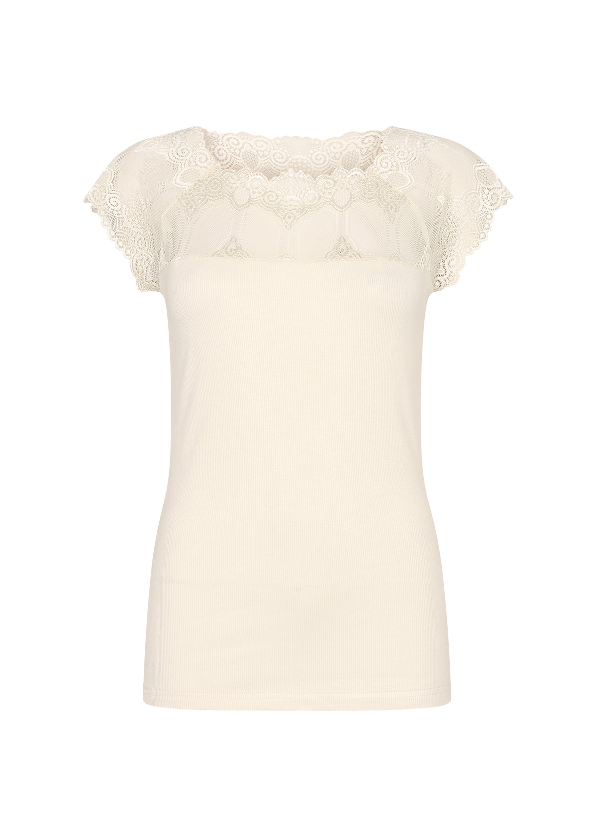 SC-Ryan 5 is a very fine and feminine t-shirt made in a nice viscose quality. The t-shirt has a nice broderie at the top, which add a feminine and festive touch to the look. Style it with suit pants and high heels for a festive look.