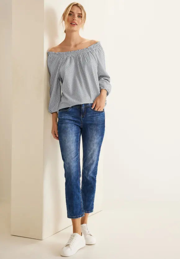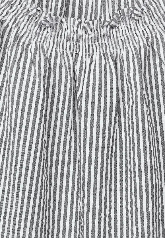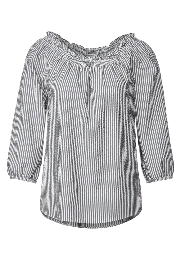 Fashion Deal! Beautiful Seersucker women's blouse by Street One with two-tone striped pattern. A new favorite look that convinces with elastic neckline. This can be pulled over the shoulders in a Carmen look and looks summery. The 3/4 sleeves with elastic in the hem skillfully round off the look.