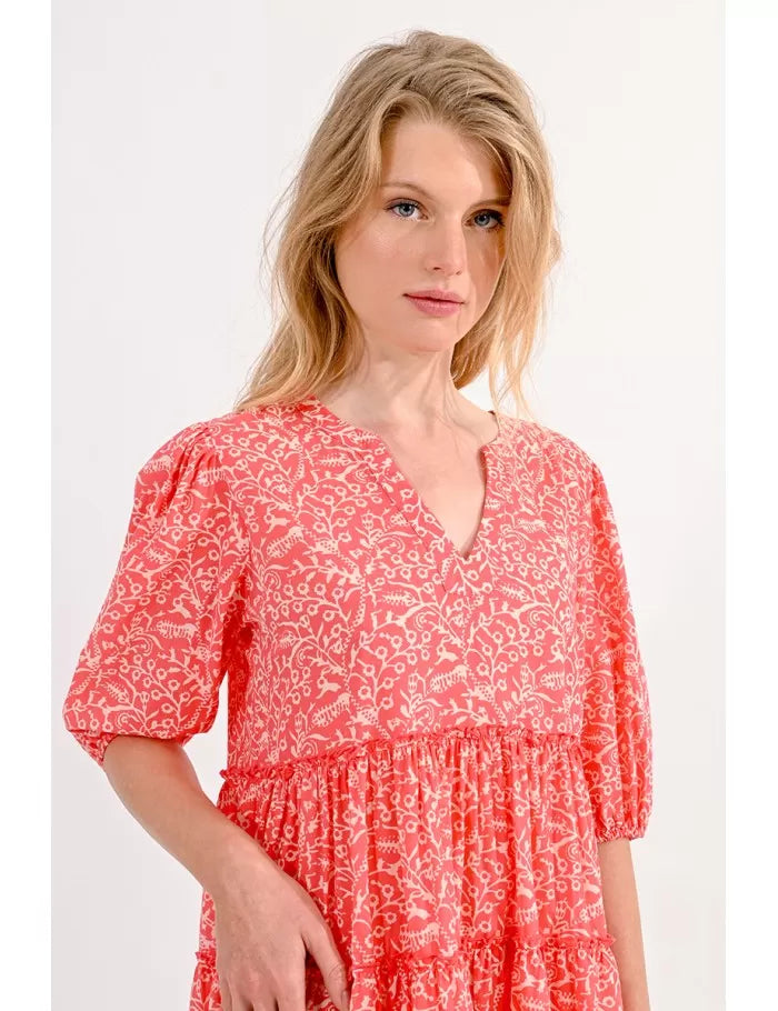 Mini dress with flattering V-neck and flared silhouette. Floral print and fresh cotton make it a must-have this season. Bonus : balloon sleeves Length : 88cm Size S