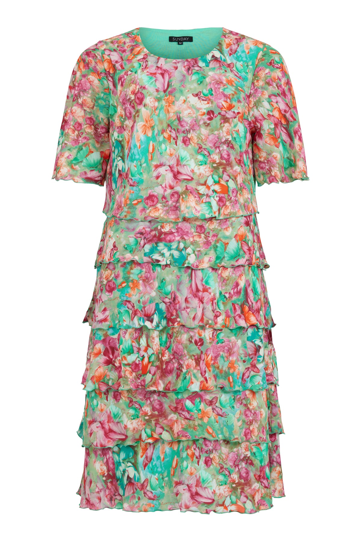 This green pink print dress features a unique scallop hem skirt, adding a touch of elegance to your Sunday wardrobe. Designed with expert craftsmanship, this dress is perfect for any formal or casual occasion. Experience the perfect blend of style and comfort with our Green Pink Print Dress-Sunday.