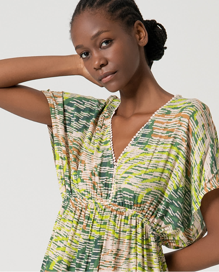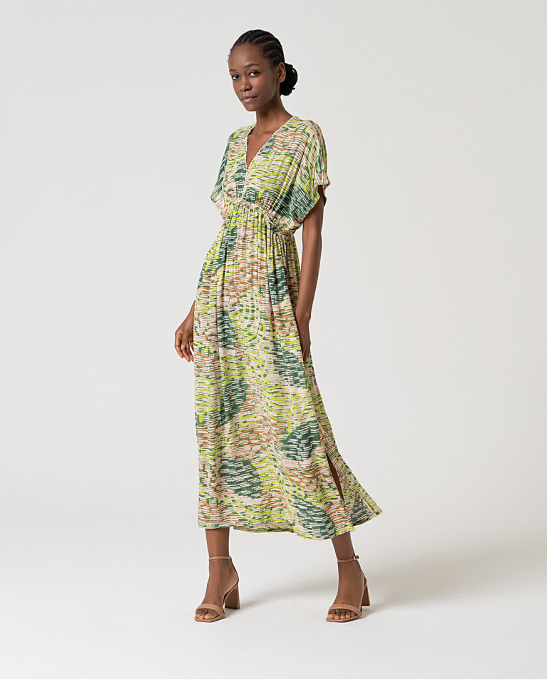721 - V-Neck Dress - Green - Surkana