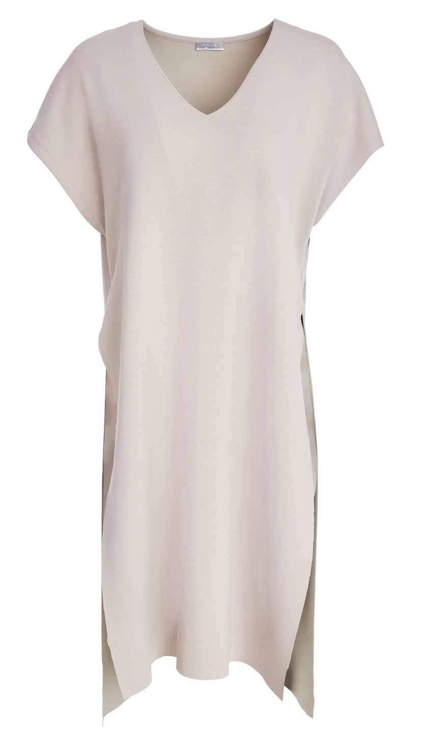 TASTEFUL TUNIC; Everyone loves a long line tunic, the NAYA V-neck version is soft and sheer, draping beautiful down the body. It finishes with a dipping hem line below the knee to elongate the body. #nayaclothing #buynayaonline #irishdesign