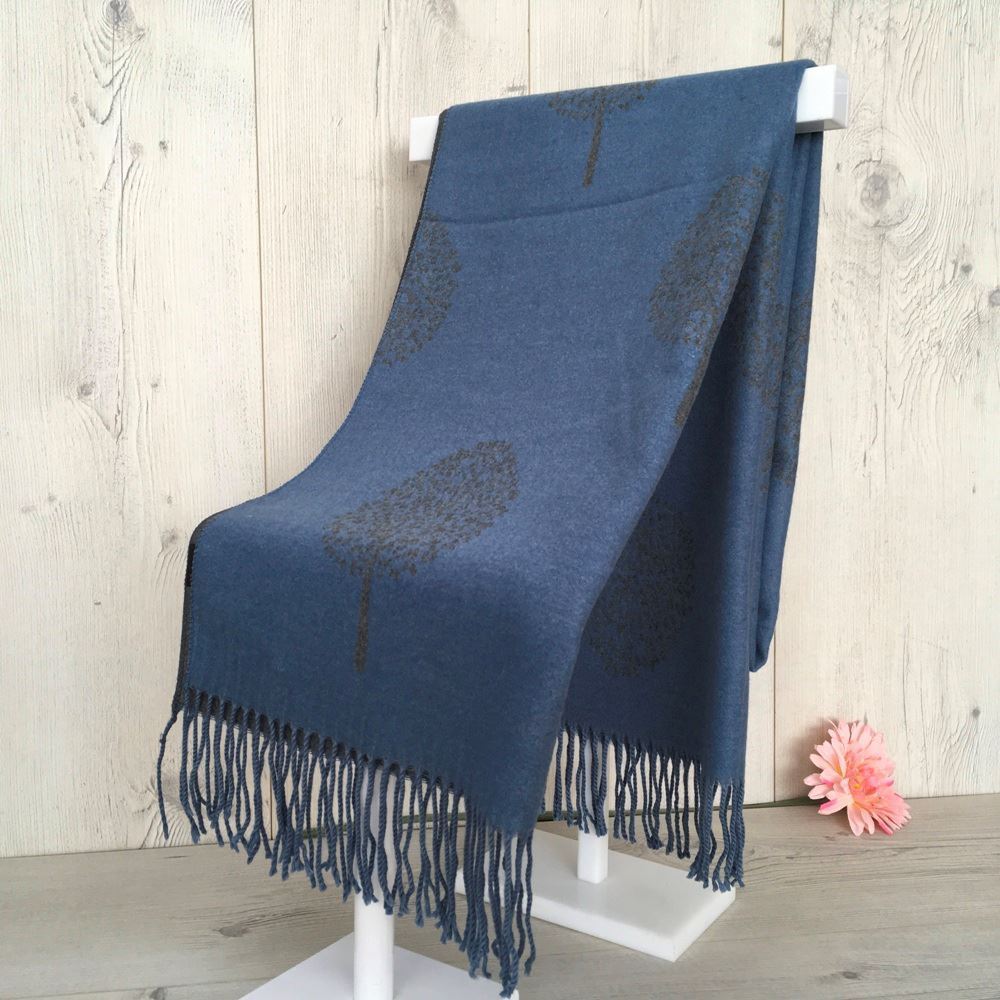 1908-004-Tassles Scarf-Blue & Dark Grey