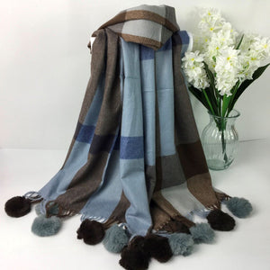 273-PomPom Scarf-Blue/Brown