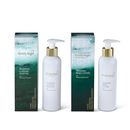 Give your skin the hydration it needs with Green Angel Argan Oil and Body Lotion combo. The Argan Oil offers a deep hydration after showering, shaving or tanning. Follow up with the Body Lotion to really lock in moisture to the skin.