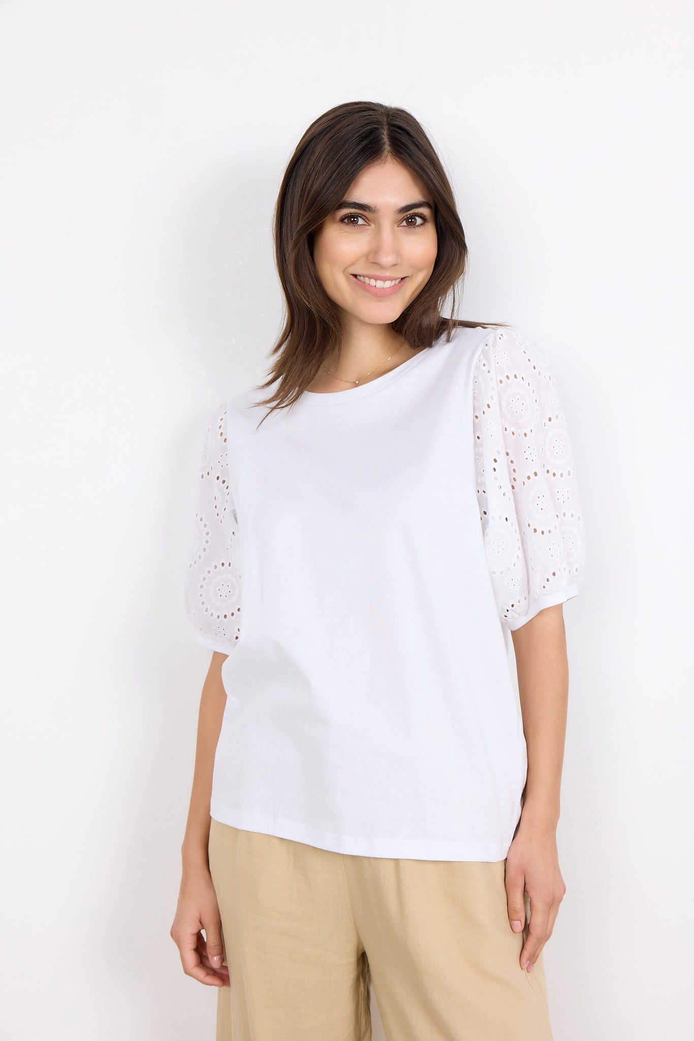 Description EN: SC-Loraine 1 is a classic t-shirt in 100% organic cotton. The t-shirt has a normal fit, a round neckline and 3/4 length sleeves with a nice pattern. Pair this lovely t-shirt with a pair of denim shorts and some sneakers for a breezy look.