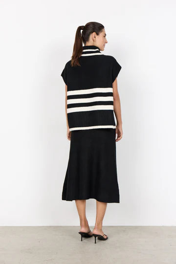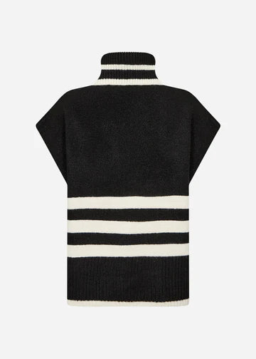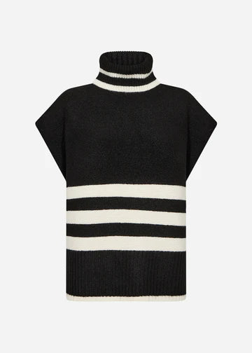 SC-VIF 1 waistcoat is made from 65% polyester, 13% acrylic, 13% nylon, 6% wool, 3% elastane. It features a high ribbed collar, a textured knit design with stripe pattern and short sleeves. Wear is over a long-sleeve top or under a jacket for added warmth and style.