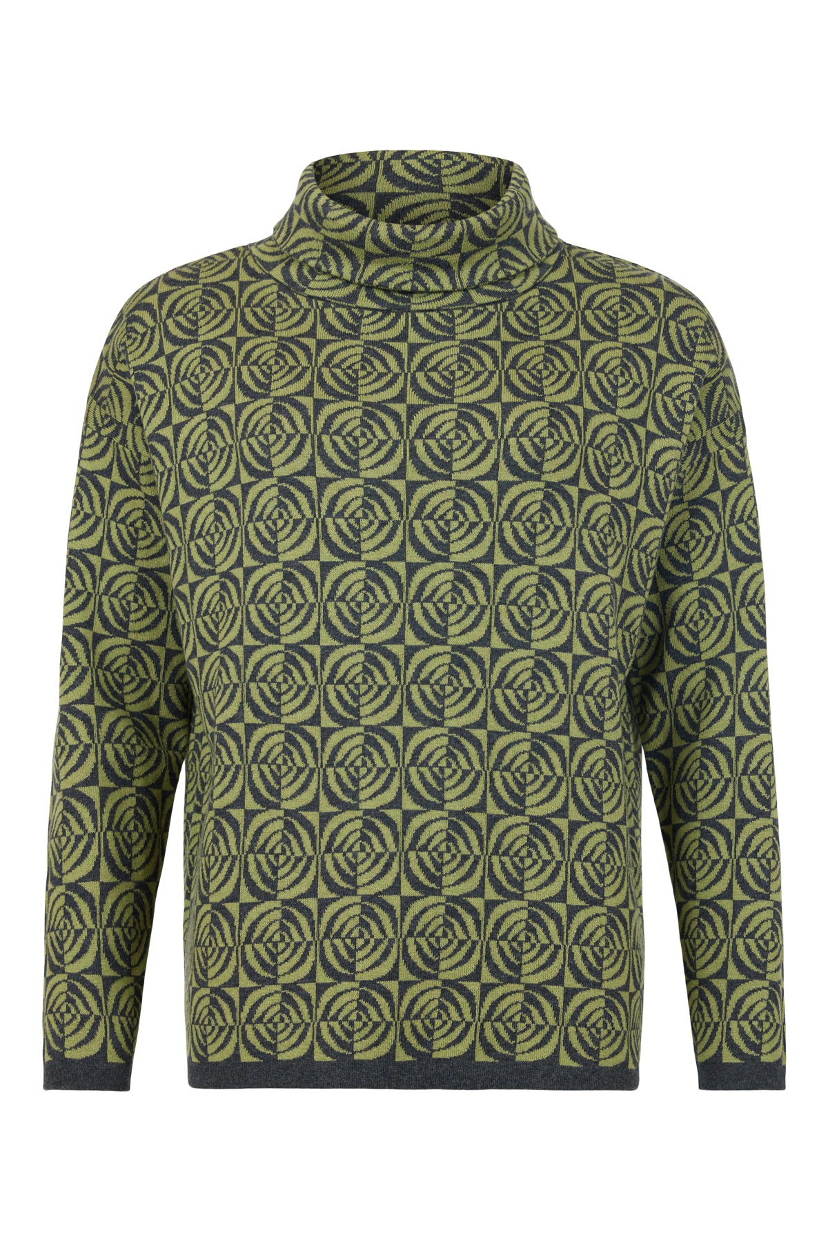 Green Printed Pullover with High Neck - Sunday