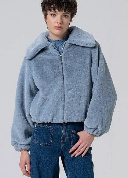 Bomber jacket, made in extra soft plush fabric, offers a casual and trendy silhouette. Its unlined design enhances lightness and comfort, while the wide collar, puffed sleeves and elasticized hem add a modern and relaxed feel. Perfect for casual look